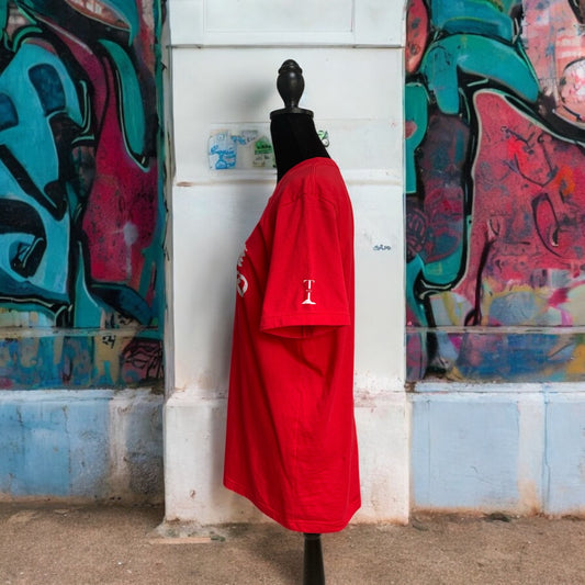 Red Short Sleeve Bella + Canvas Soft Style T-shirt with the empowering and inspiring phrase "Moving Forward" in all white print -Unisex **Free Shipping**