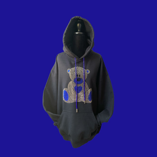 DAZZLING CRYSTAL AND ROYAL BLUE RHINESTONE TEDDY BEAR - BLACK HOODIE ** Free Shipping **