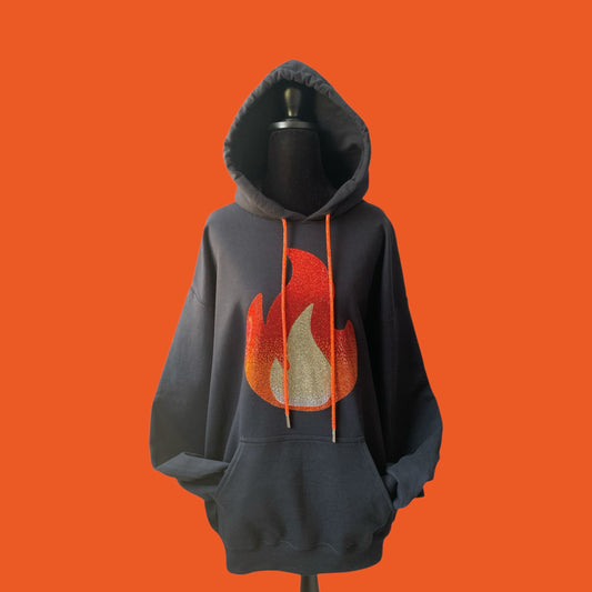 EYE-CATCHING RHINESTONE FLAME BLACK HOODIE ** Free Shipping **
