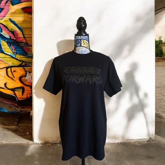Black Short Sleeve T-shirt with the empowering and inspiring phrase "Moving Forward" in all black - Unisex **Free Shipping**