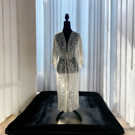 New! Elegant Beige Sheer Kimono **Free Shipping**