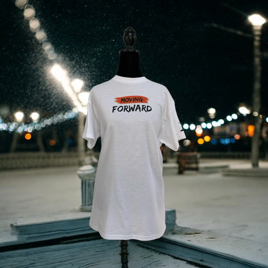 White Short Sleeve T-shirt with the empowering and inspiring phrase "Moving Forward" - Unisex **Free Shipping**