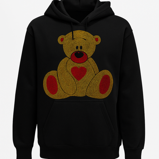 DAZZLING TAN & RED RHINESTONE TEDDY BEAR WITH RED OR BLACK HOODIE ** Free Shipping **