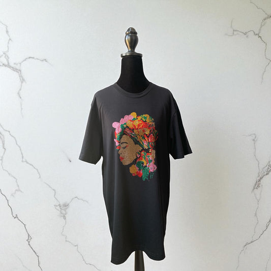 SPARKLING RHINESTONE BEAUTIFUL LADY ON BELLA + CANVAS BLACK TEE ** Free Shipping **
