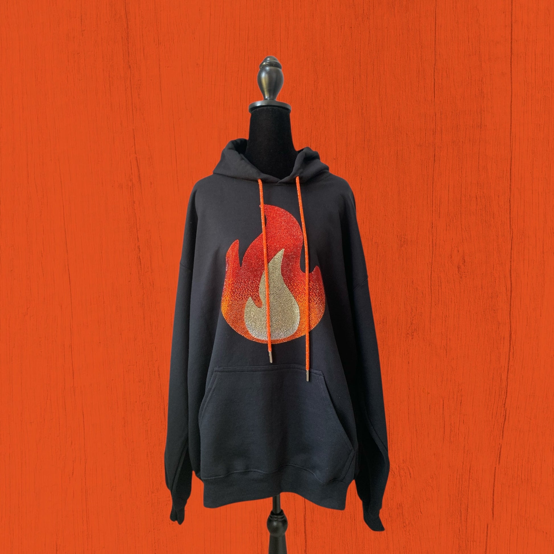 Ignite your style with this bold hoodie, featuring a dazzling rhinestone flame that instantly commands attention with matching dazzling rhinestone drawstrings. Each crystal catches the light, creating a shimmering, dynamic fire that symbolizes passion, energy, and unstoppable confidence. Perfect for making a statement whether you’re out on the streets or turning heads at an event, this hoodie blends streetwear edge with a touch of luxury. The rhinestone detailing adds a sparkling dimension, making the flame appear alive and flickering with every movement. Light up your wardrobe and let your energy shine—this hoodie isn’t just clothing; it’s an attitude.