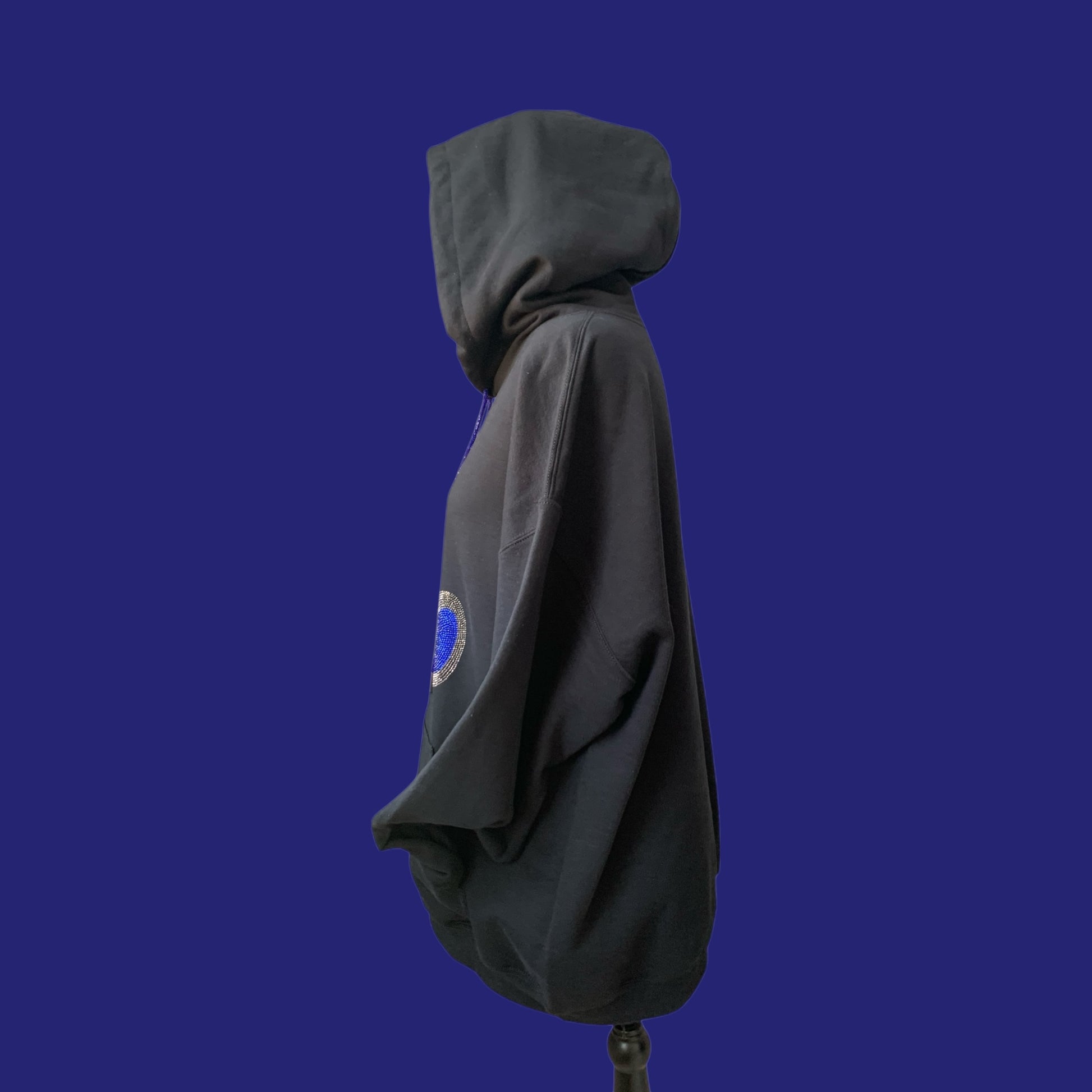 DAZZLING CRYSTAL AND ROYAL BLUE RHINESTONE TEDDY BEAR - BLACK HOODIE ** Free Shipping **